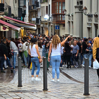 We had to skip a city because of accommodations. There are fiestas happening across Spain and here in Logroño the Fiesta de San Mateo begins tomorrow but the partying started TODAY and will last for the next week!!! Everyone is walking around with a goat skin bota full of wine!! Even the teenagers have them!! All the streets are packed with people and music is blasting in every corner of the city. We went to mass where the party outside was so loud that you could still feel the beat through the thick stone walls!!